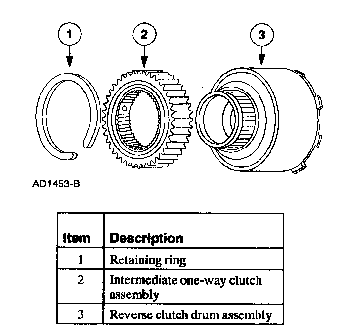 The intermediate one-way clutch works with the intermediate friction clutch to hold the reverse clutch drum and reverse sun gear stationary in second gear during acceleration. The intermediate one-way clutch freewheels in third gear and during coasting in second gear, (D) and D ranges.
