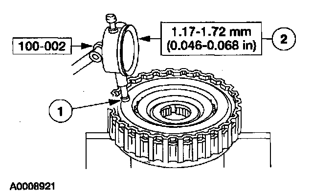14. Position and zero Dial Indicator With Bracketry on the forward clutch pack.