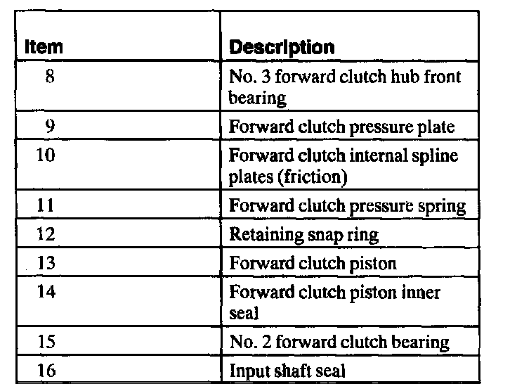 13. Note: Air pressure may be required to remove the forward clutch piston.