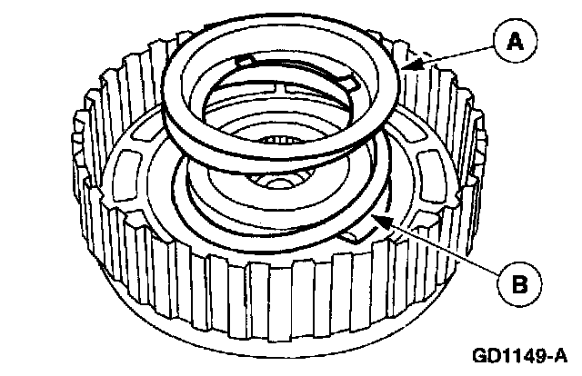 Install the (A) inner and (B) outer forward clutch piston seals. Note the direction of the sealing rings before installation.