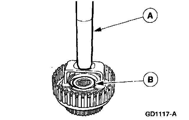Position the (A) Forward Clutch Lip Seal Protector (inner) on the clutch cylinder hub and (B) Forward Clutch Lip Seat Protector (Outer) on the clutch piston.