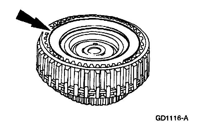 1. Inspect the clutch cylinder thrust surfaces, piston bore and clutch plate serrations for scores or burrs. Minor scores or burrs may be removed with crocus cloth. Replace the clutch cylinder if badly scored or damaged.