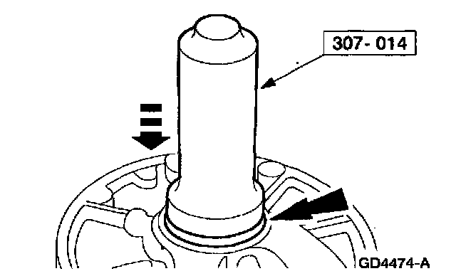 2 Push the intermediate clutch piston to the bottom of the pump body bore, exerting even pressure and remove the lip seal protector.
