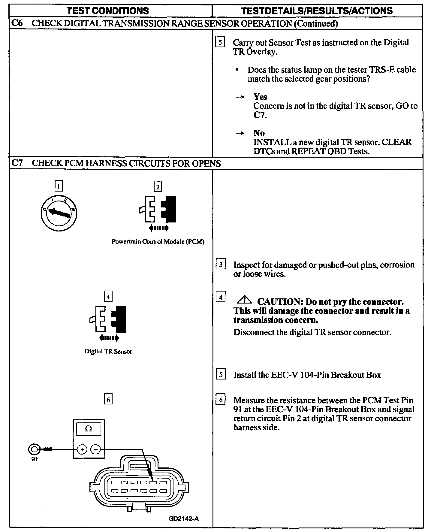 Note: Refer to the Digital Transmission Range (TR) Sensor Connector illustration.