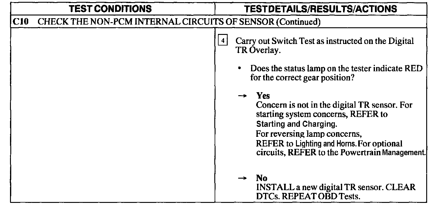 Test C: Digital Transmission Range (TR) Sensor