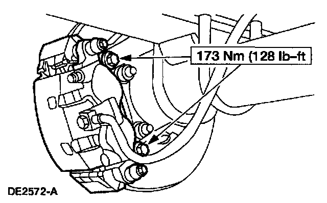 11. Remove the bolts retaining the anchor plate to the axle. Position the rear brake caliper aside. Repeat for the opposite side.