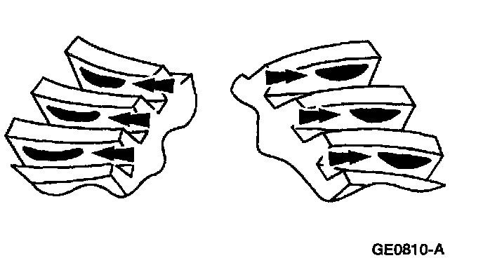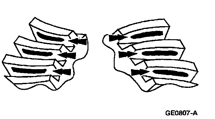In general, desirable ring gear tooth patterns must have the following characteristics:- Drive pattern on the drive side ring gear well centered on the tooth.