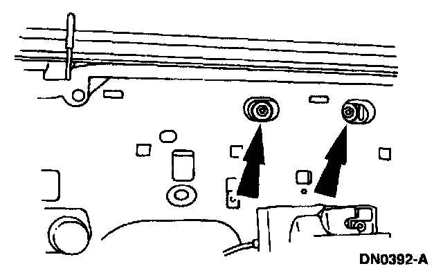 1. Remove the front door trim panel.2. Loosen, but do not remove, the window regulator bracket upper nuts.
