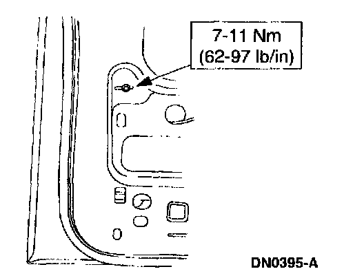 3. Raise the front door window glass to the full up position, and tighten the nuts.