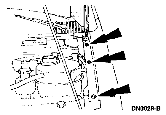 - Remove the front fender-to-fender upper apron retaining screws.
