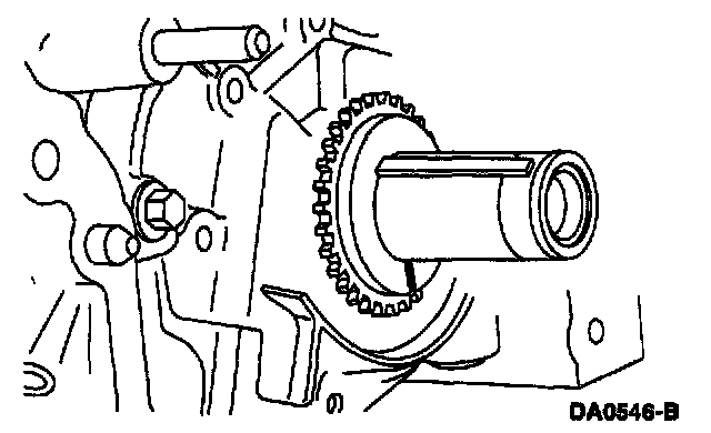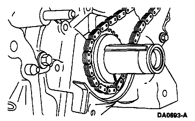 Install the outer crankshaft sprocket and timing chain with the long hub of the crankshaft sprocket facing inward.