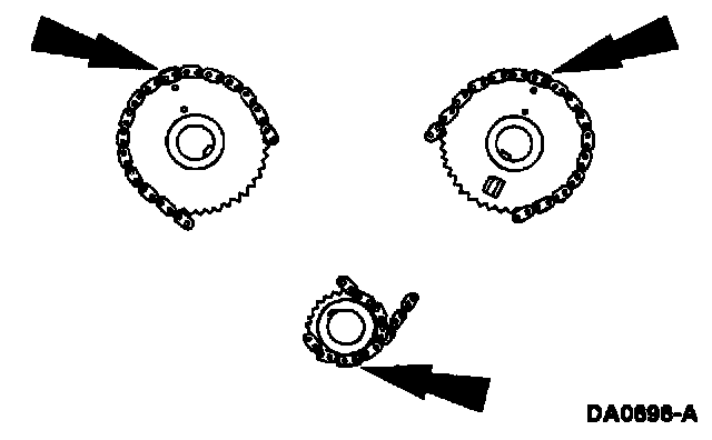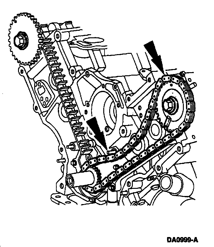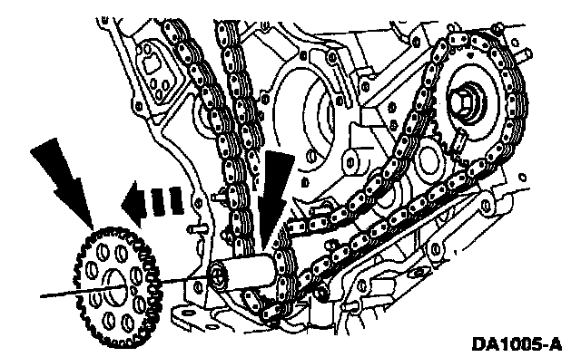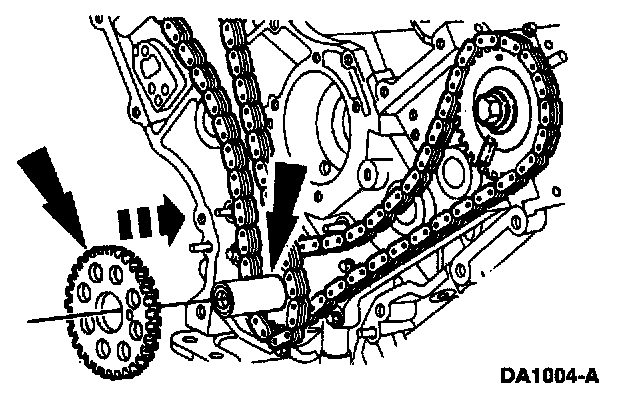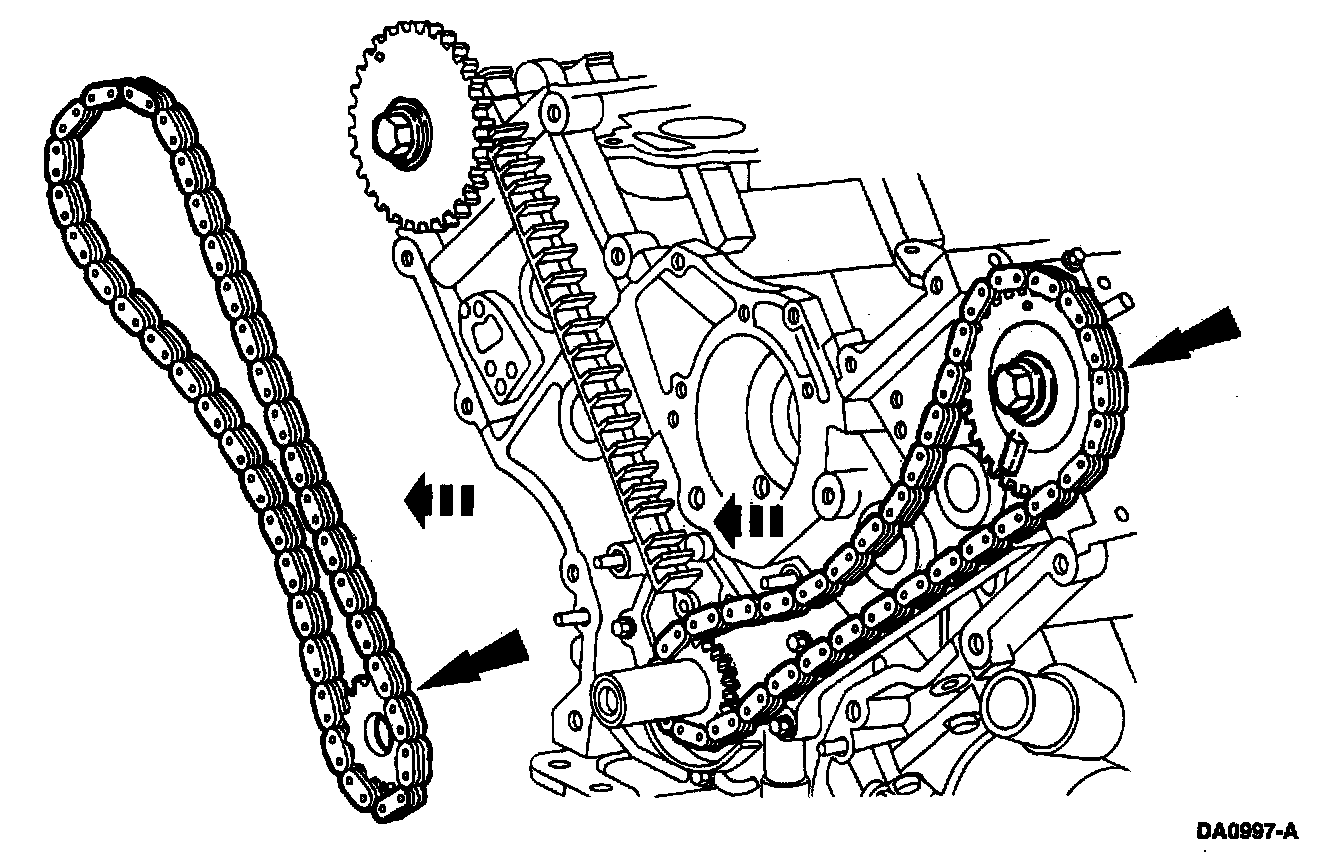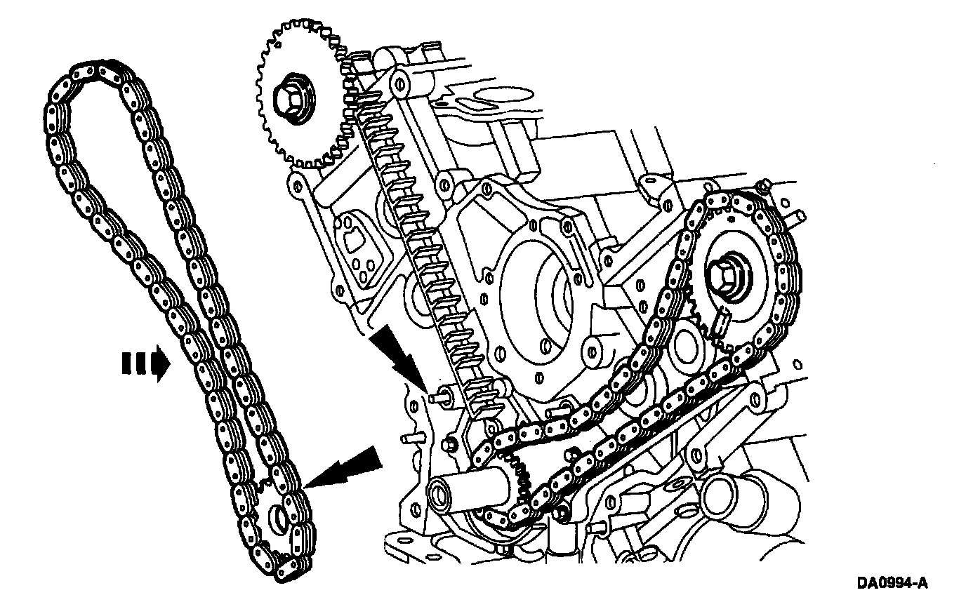 Install the timing chain on the camshaft sprocket with the two chain links and timing marks aligned. Specifications