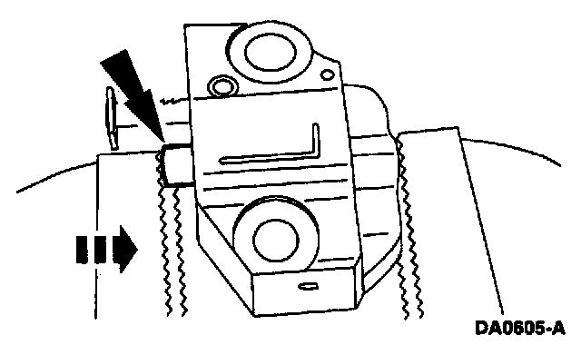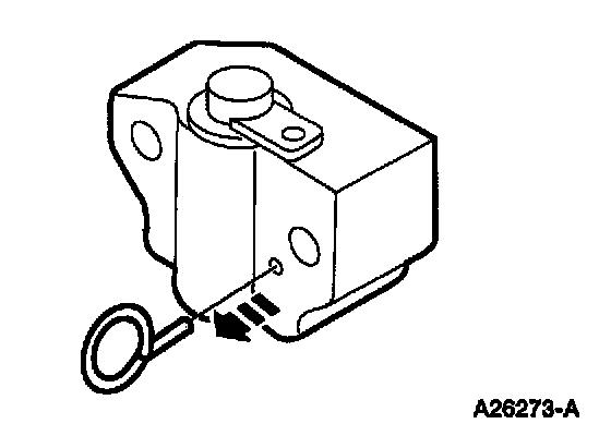 4. Install a paper clip into the hole in the tensioner housing to hold the ratchet assembly and plunger in during installation.