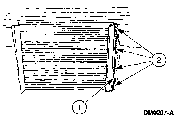 CAUTION: Do not damage the cooling fins while handling the A/C condenser core.