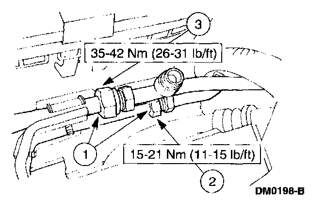 CAUTION: Use a wrench on each side of the fitting to prevent damage to the A/C fitting.