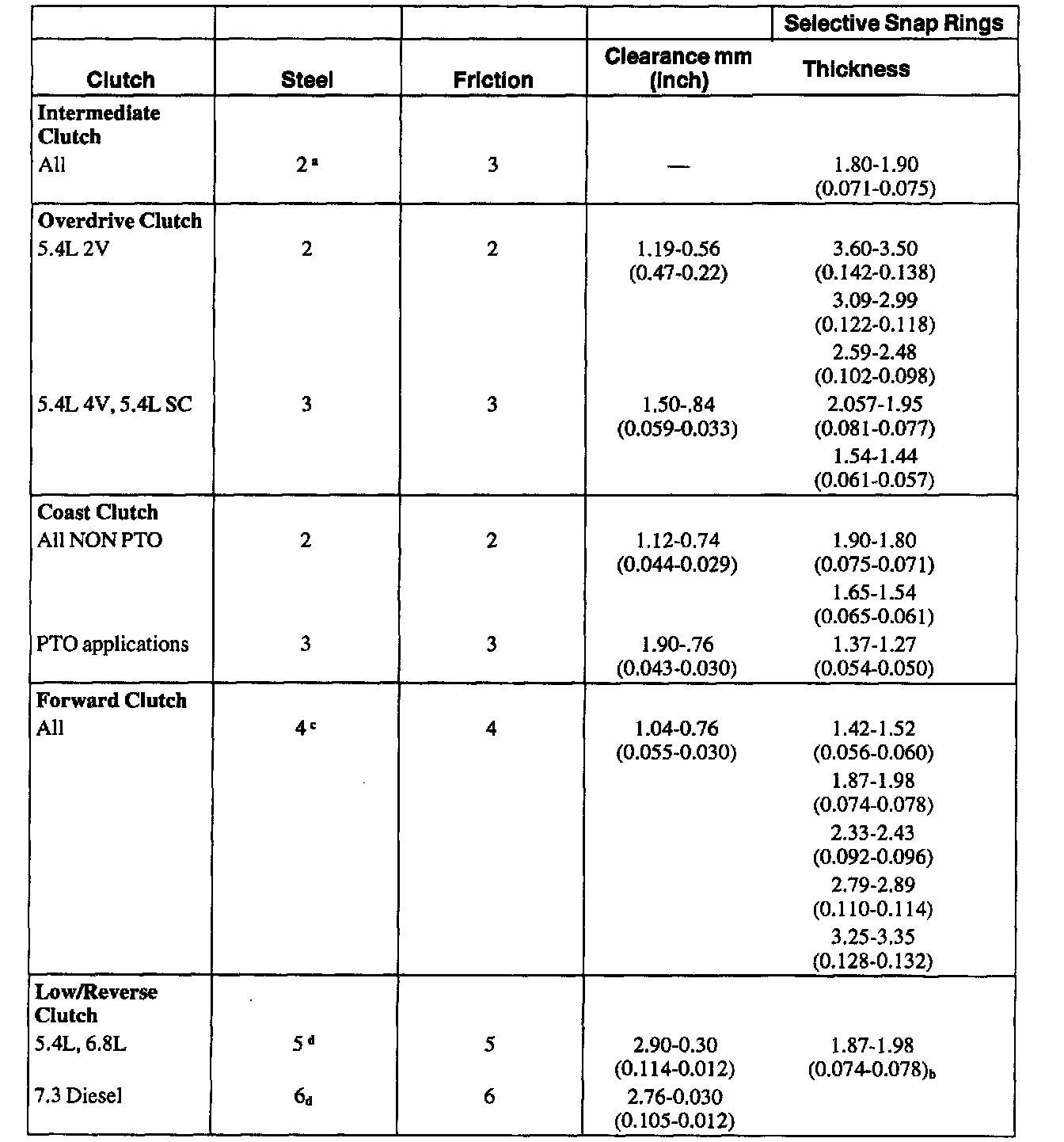 Clutch Plate Usage and Clearance Specifications