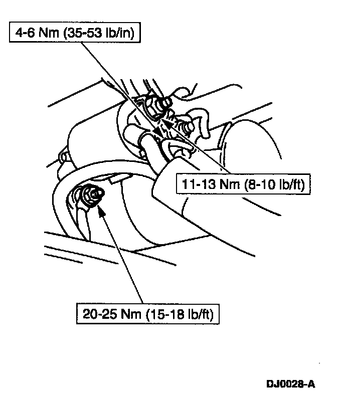 10. Remove the transmission cooler line/primary battery cable bracket nut.