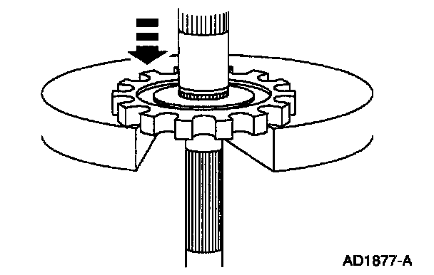 1. If removed, use the Arbor Press and the Remover/Replacer Tube to install the park gear, press the park gear onto the output shaft until it stops at the shoulder on the output shaft.