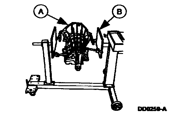 Mount the (A) transmission to the (B) Car/Truck Engine Stand.