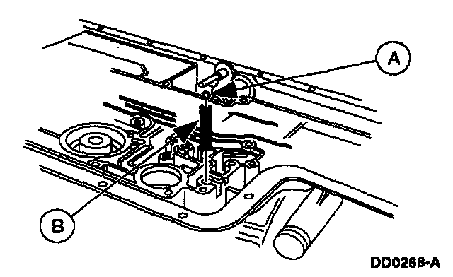 47. If required, remove the (A) bolts and the (B) parking rod guide plate.