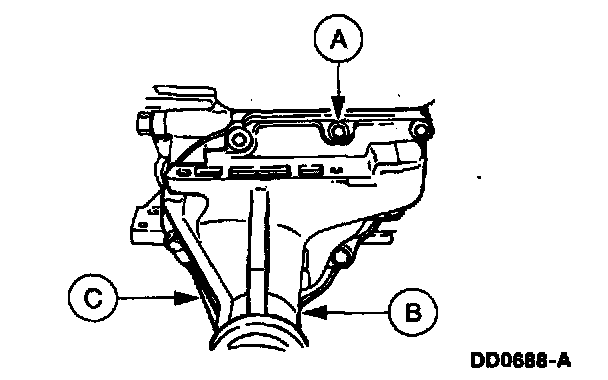 38. Remove the 8 (A) bolts, the (B) stud and the (C) extension housing.