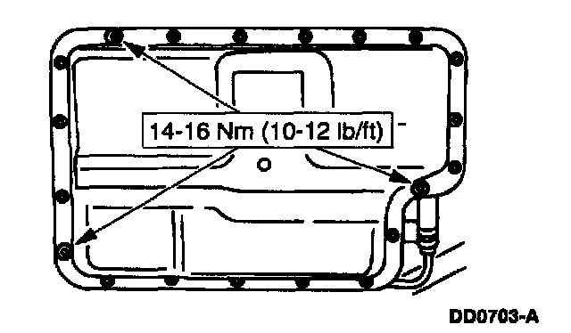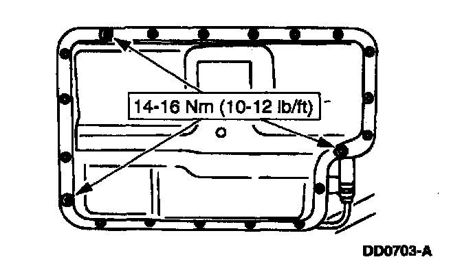 14. Reinstall the transmission fluid pan-to-case retaining bolts removed to install the jack adapter.