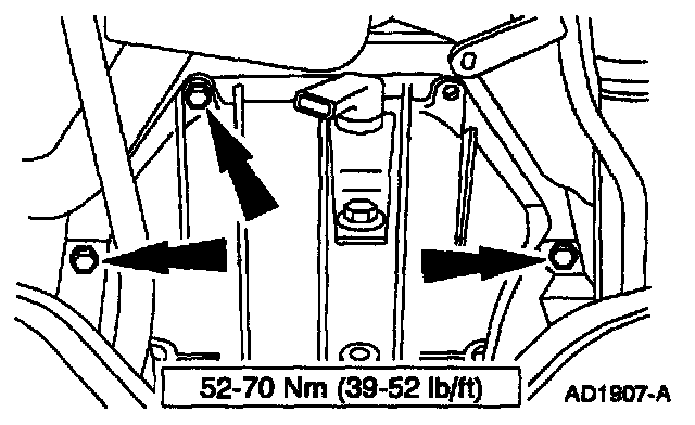 44. Install and alternately snug, then tighten the transmission-to-engine bolts.