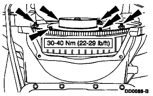 7. Install, snug, then tighten the new torque converter-to-flexplate nuts.