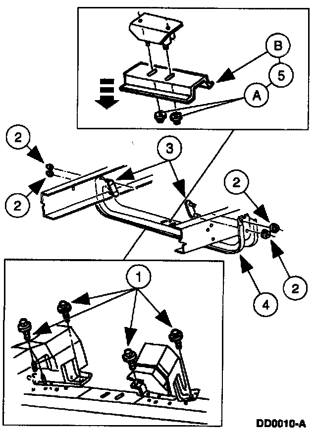 5 Remove the (A) nuts and the (B) transmission support crossmember.