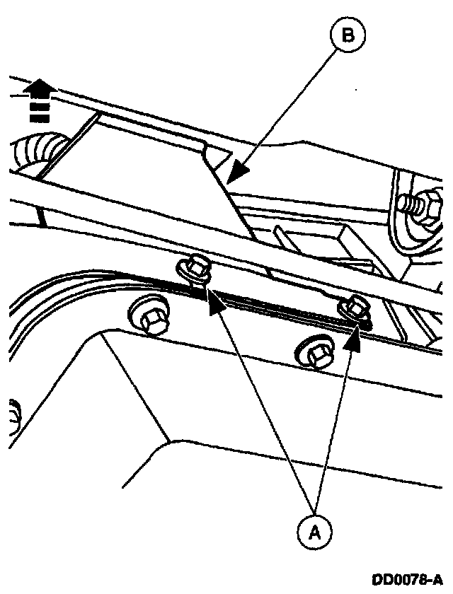 42. Loosen the (A) bolts and remove the (B) heat shield.