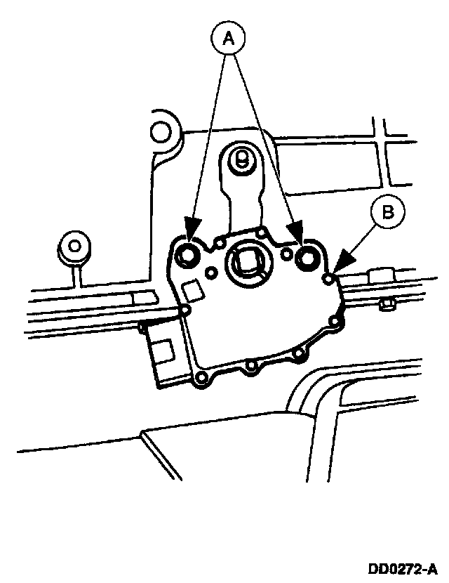 5. Remove the (A) bolts and the (B) digital Transmission Range (TR) sensor.