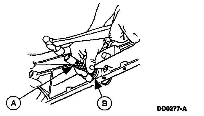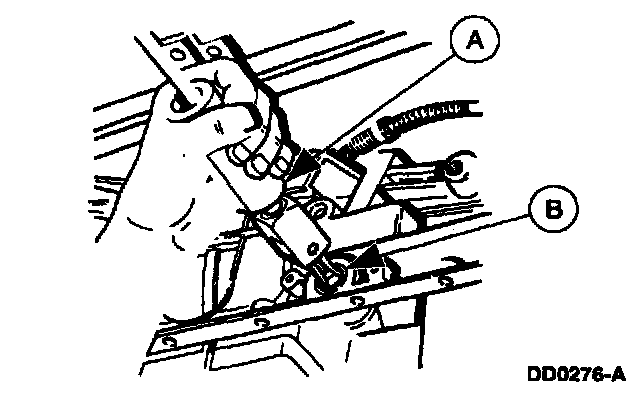 Install the (A) parking pawl actuating rod and the (B) inner manual valve detent lever.