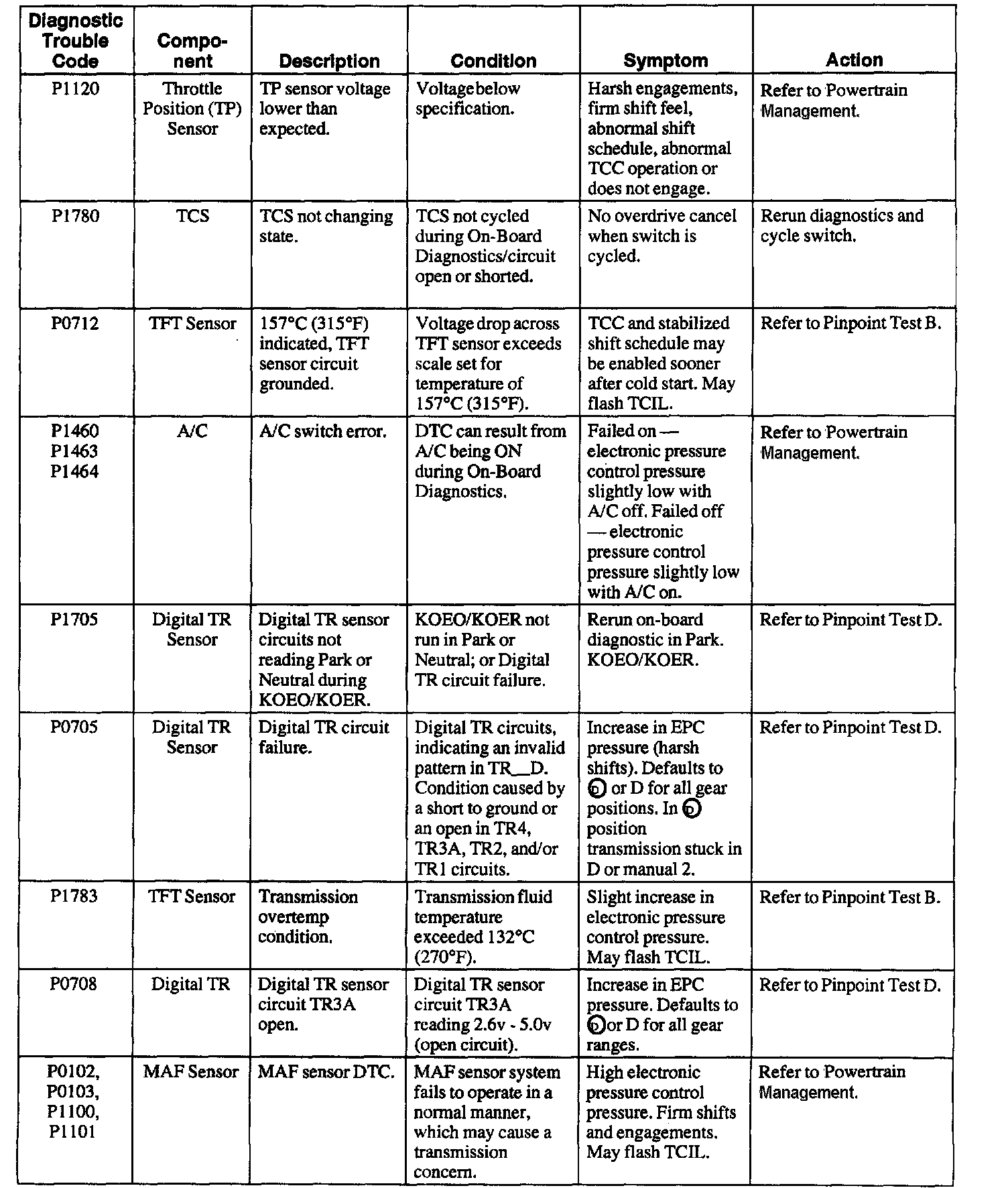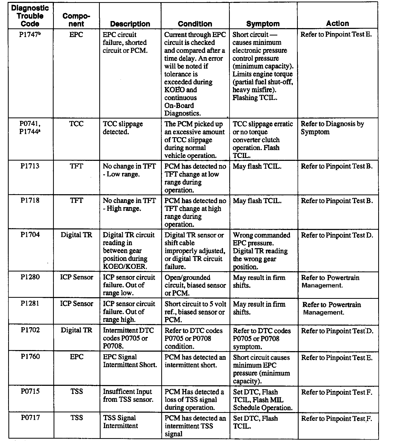 Trouble Code to Pinpoint Test Charts