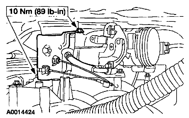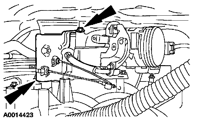 Remove the bolts retaining the accelerator cable bracket and position the bracket aside.