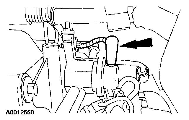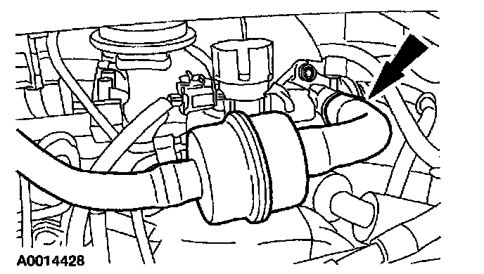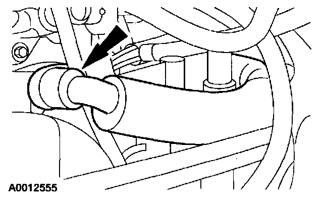 6. Compress and slide the hose clamp and disconnect the upper radiator hose.