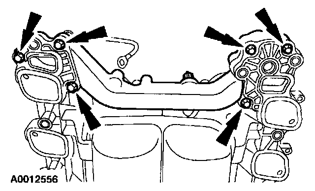 3. Position the new intake manifold gaskets and the intake manifold, loosely install the nine bolts.