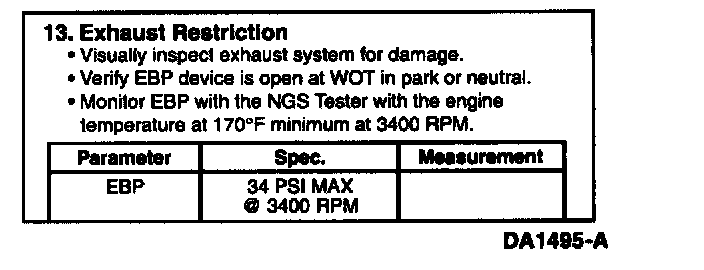 Use NGS Tester PID EBR An EBP reading above 234 kPa (34 psia) indicates a restricted exhaust condition.