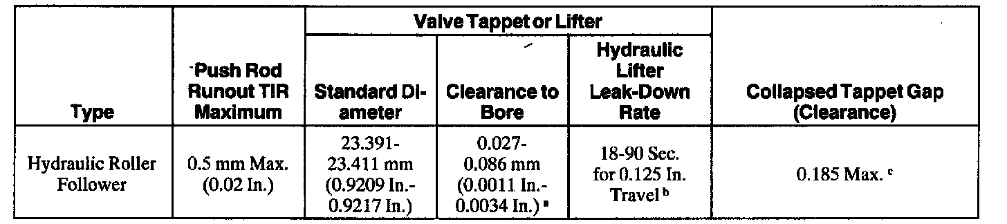 c Measured at valve tip to rocker arm.