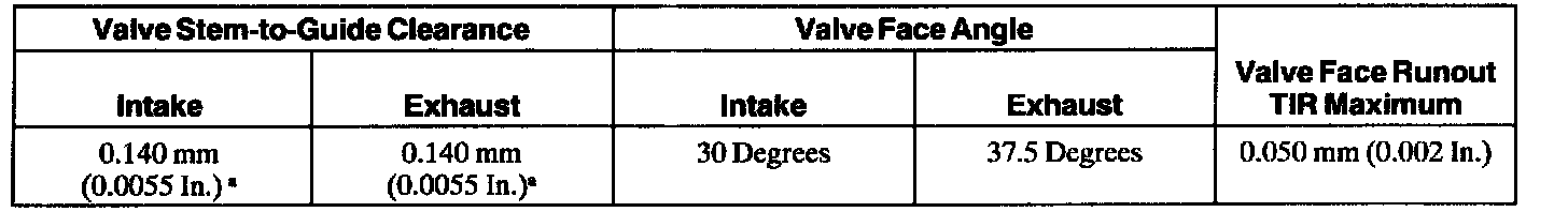 a Valve seat angle - intake 30° and exhaust 37.5°