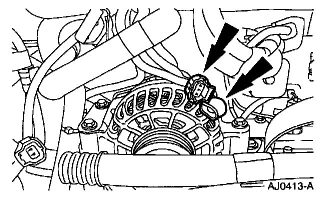7. Disconnect the lower generator harness connector and harness clip.