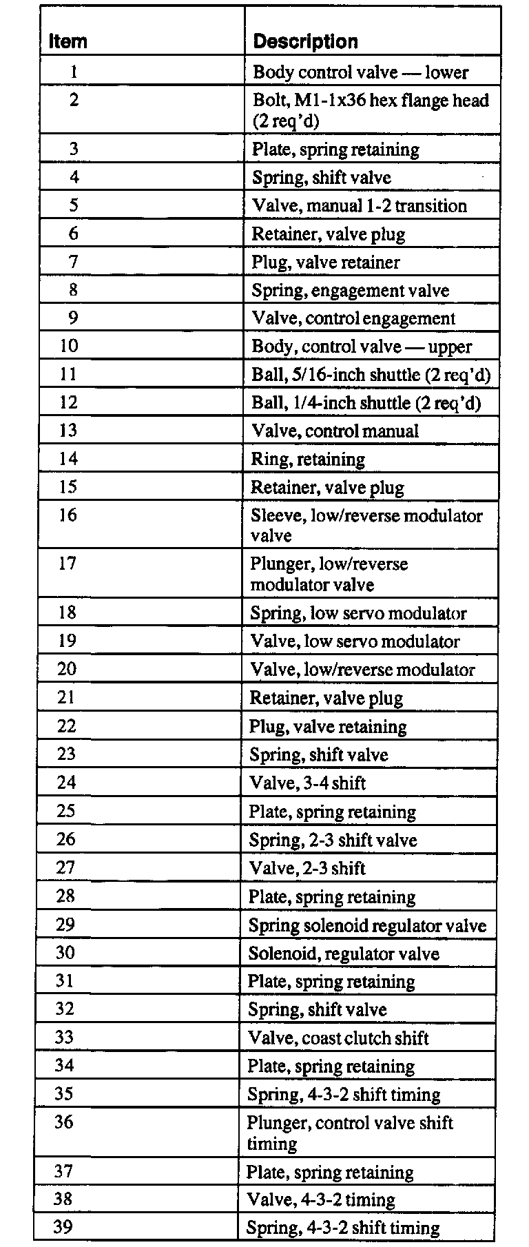 3. Remove the control valves and springs from the lower main control valve body. Inspect the valves for nicks and burrs. If the valves are damaged the main control valve body will need to be replaced.