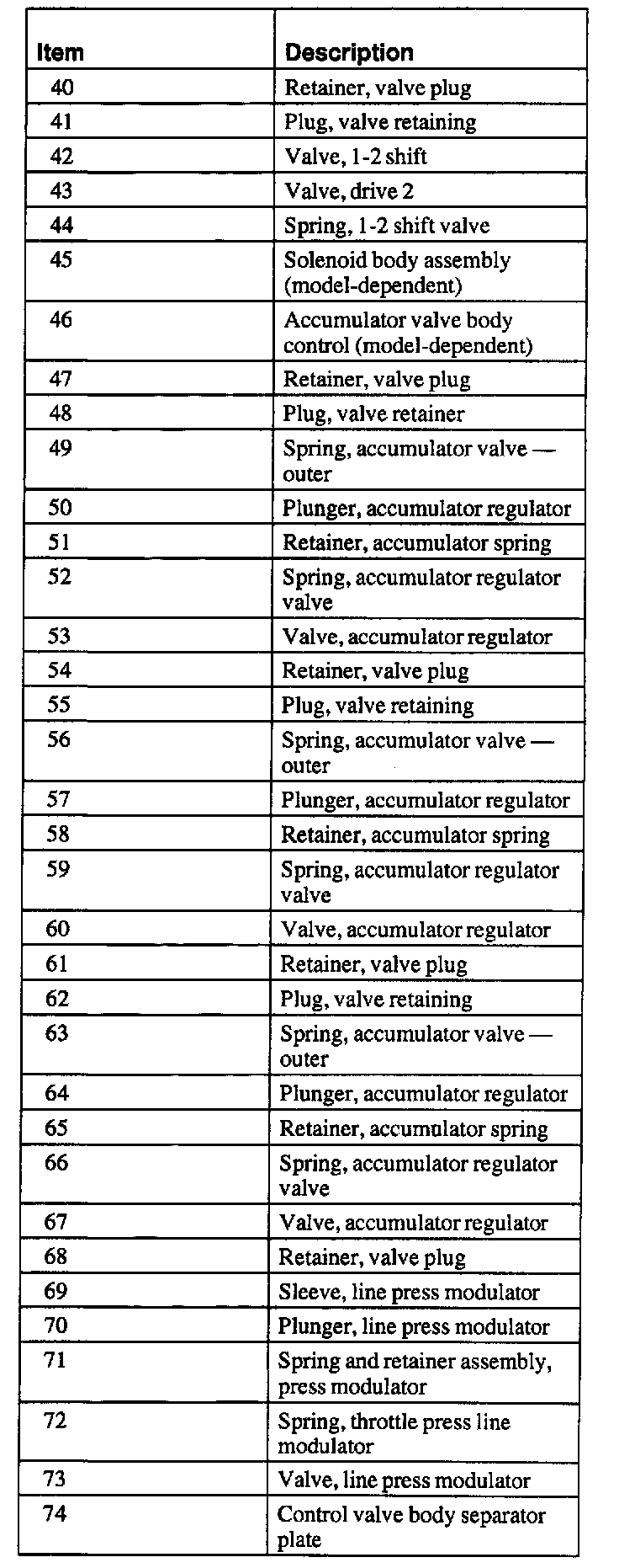 Upper, Lower, Accumulator and Solenoid Bodies, Disassembled View