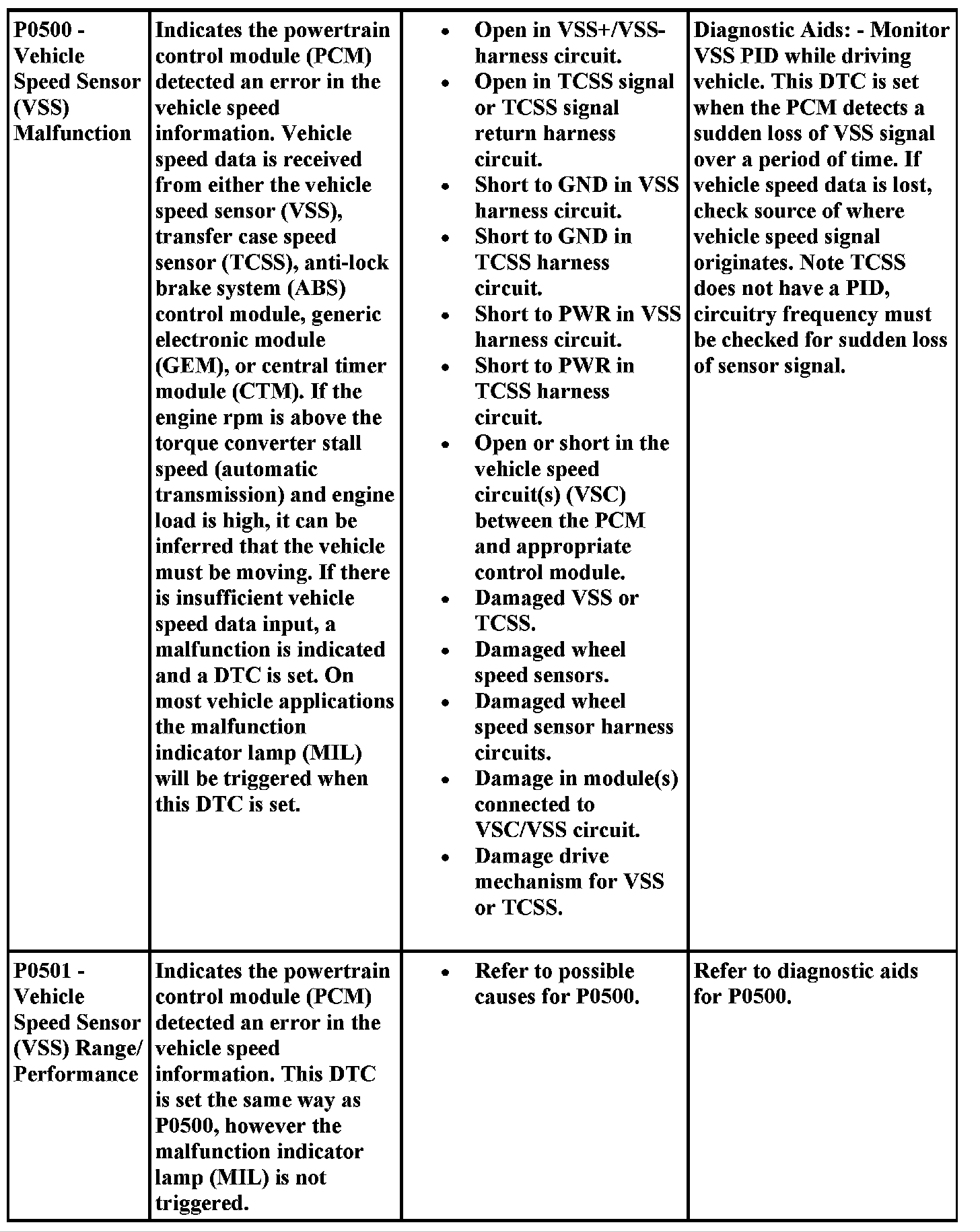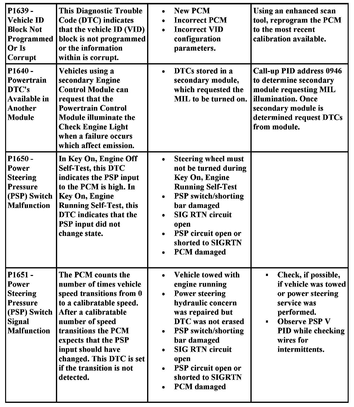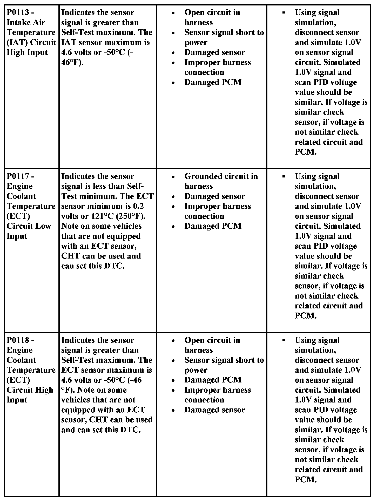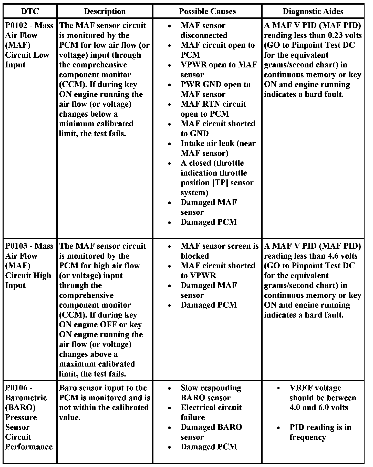 DTC Possible Causes and Diagnostic Aides