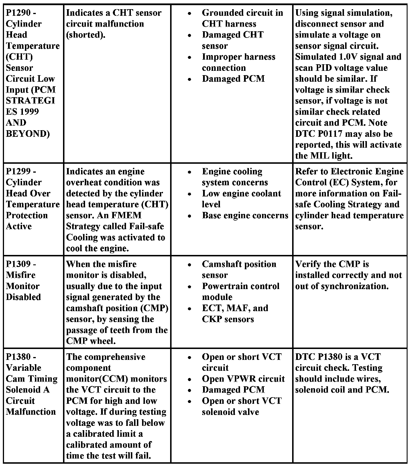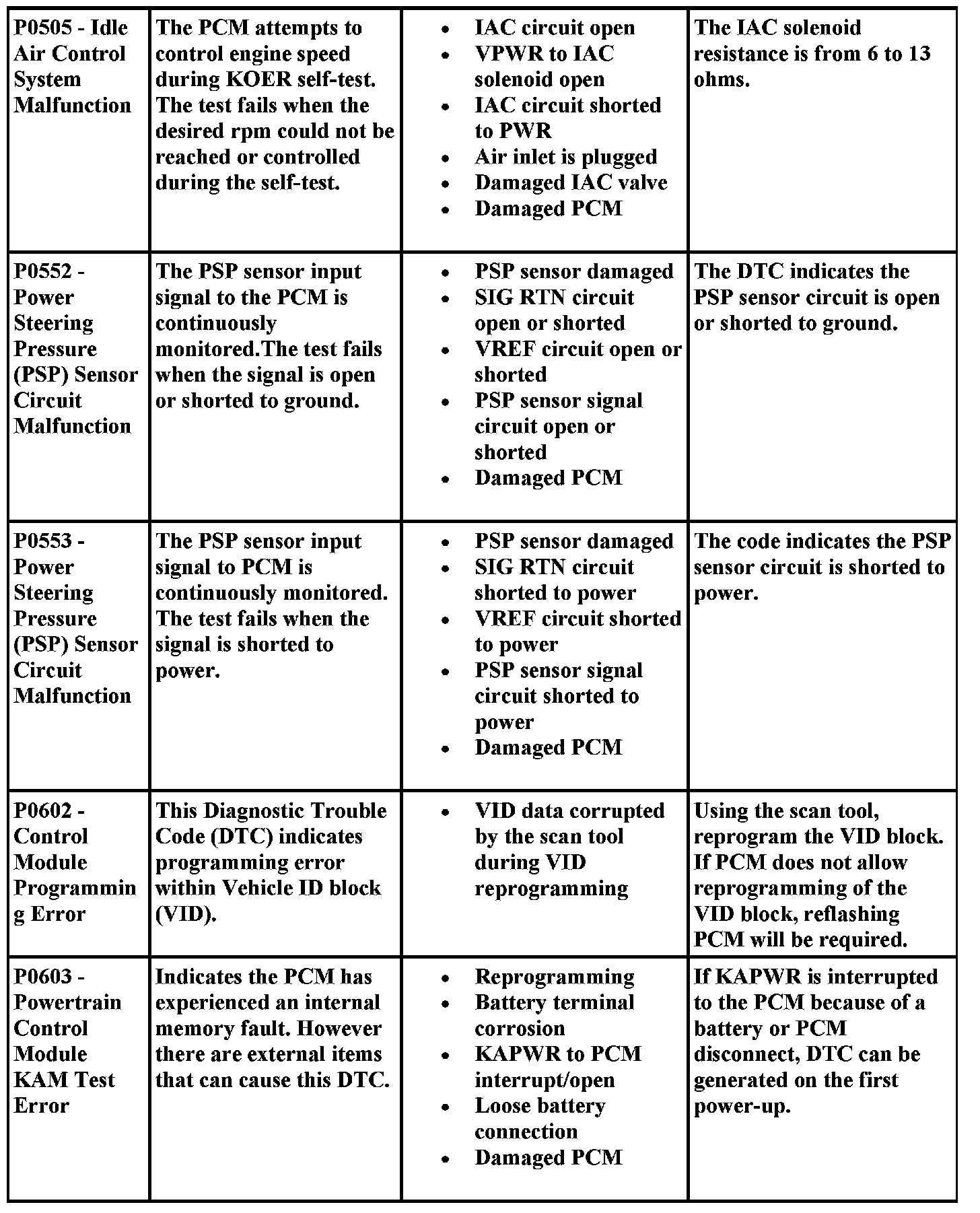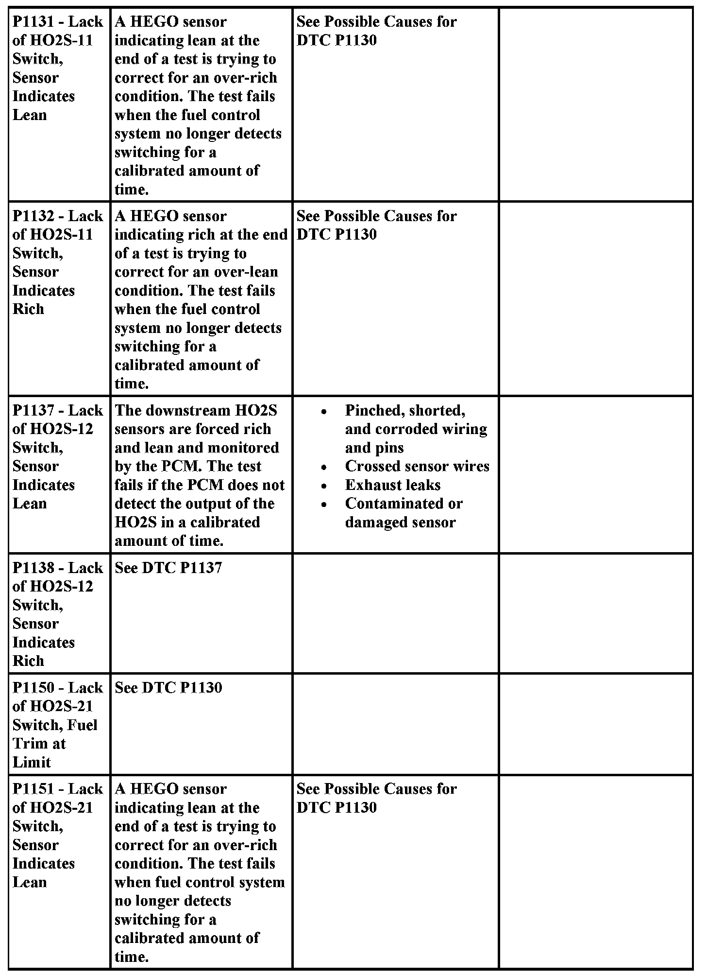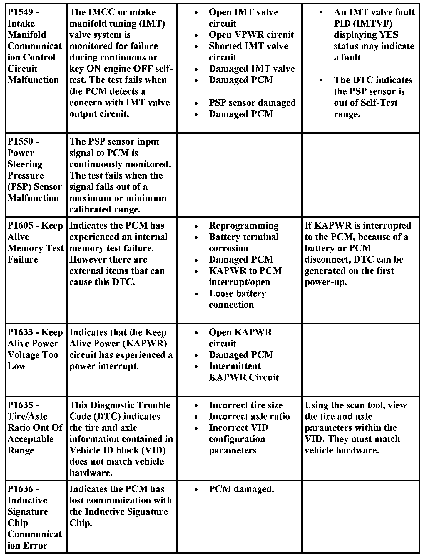 DTC Possible Causes and Diagnostic Aides