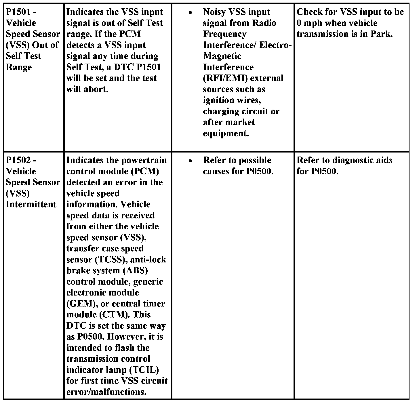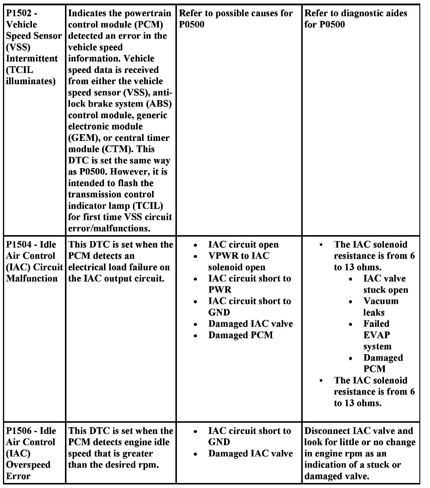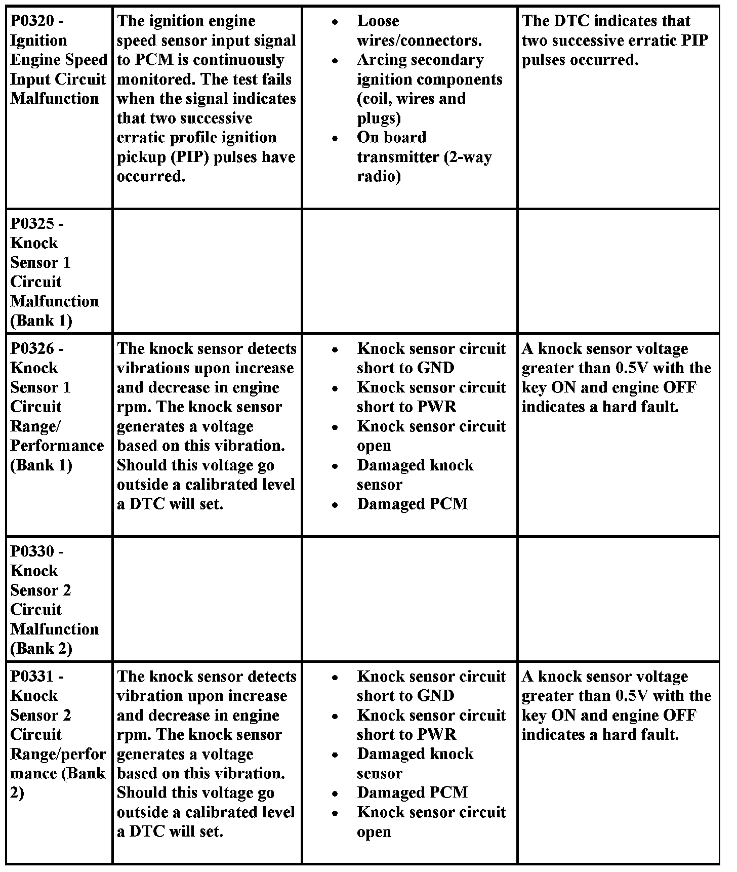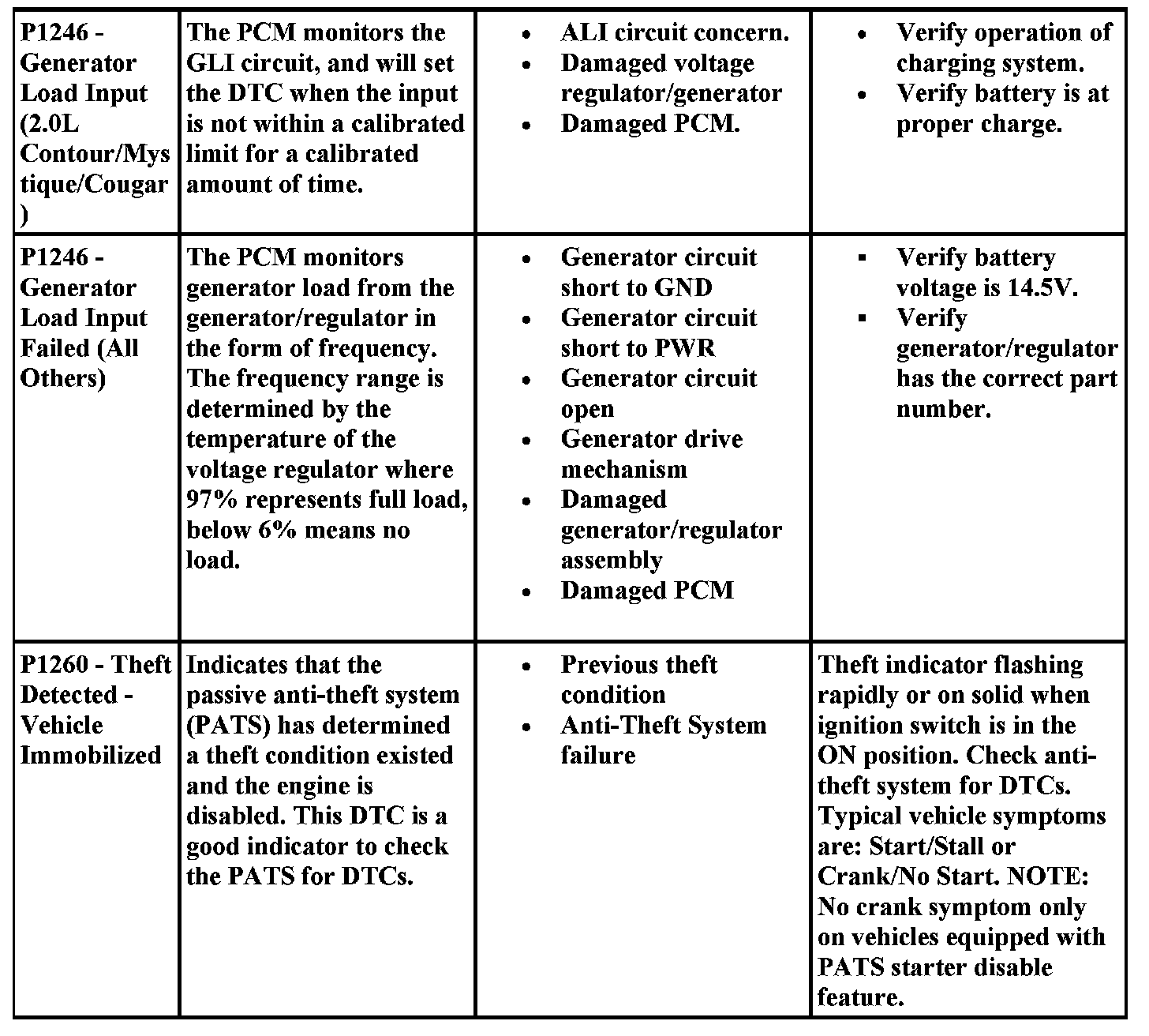 DTC Possible Causes and Diagnostic Aides