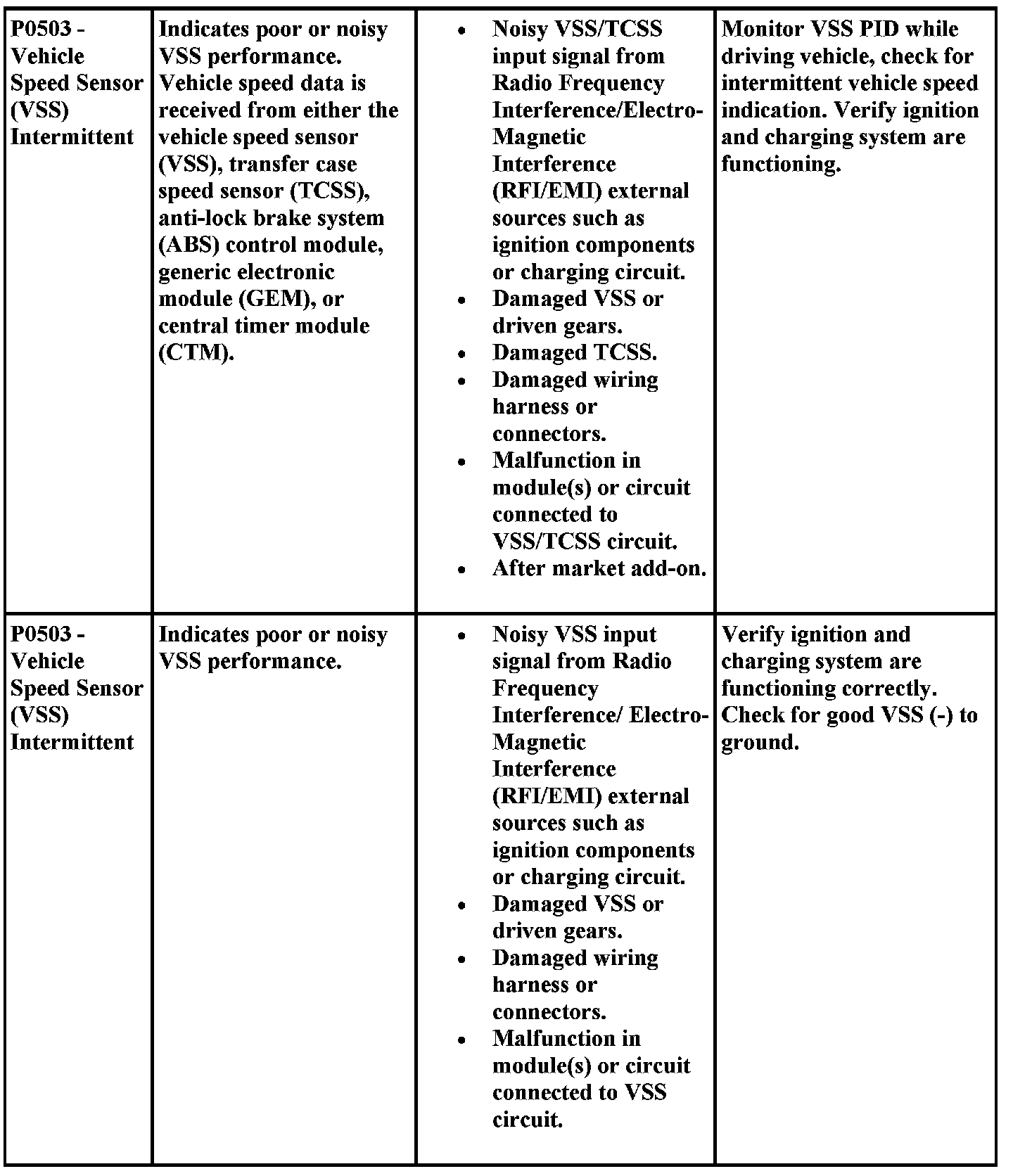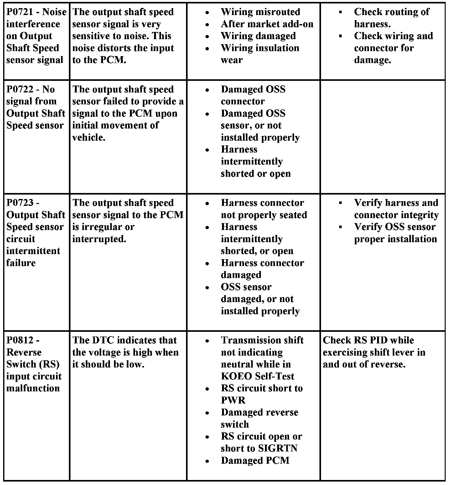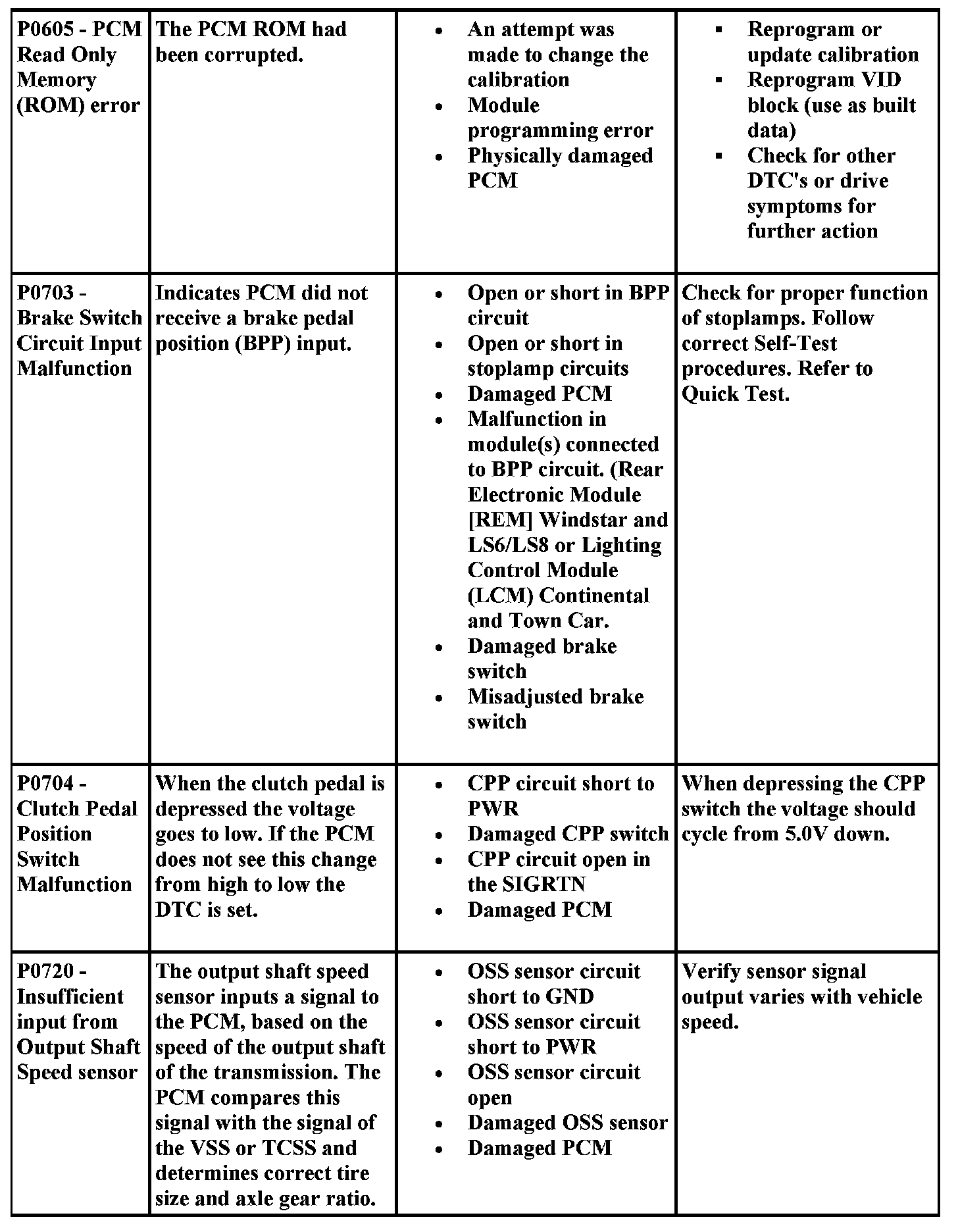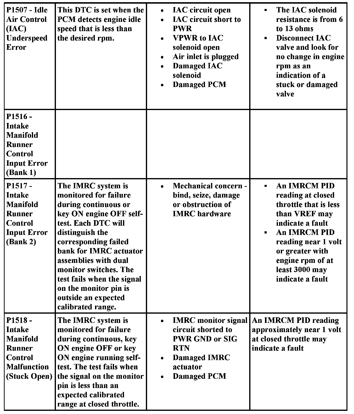 DTC Possible Causes and Diagnostic Aides