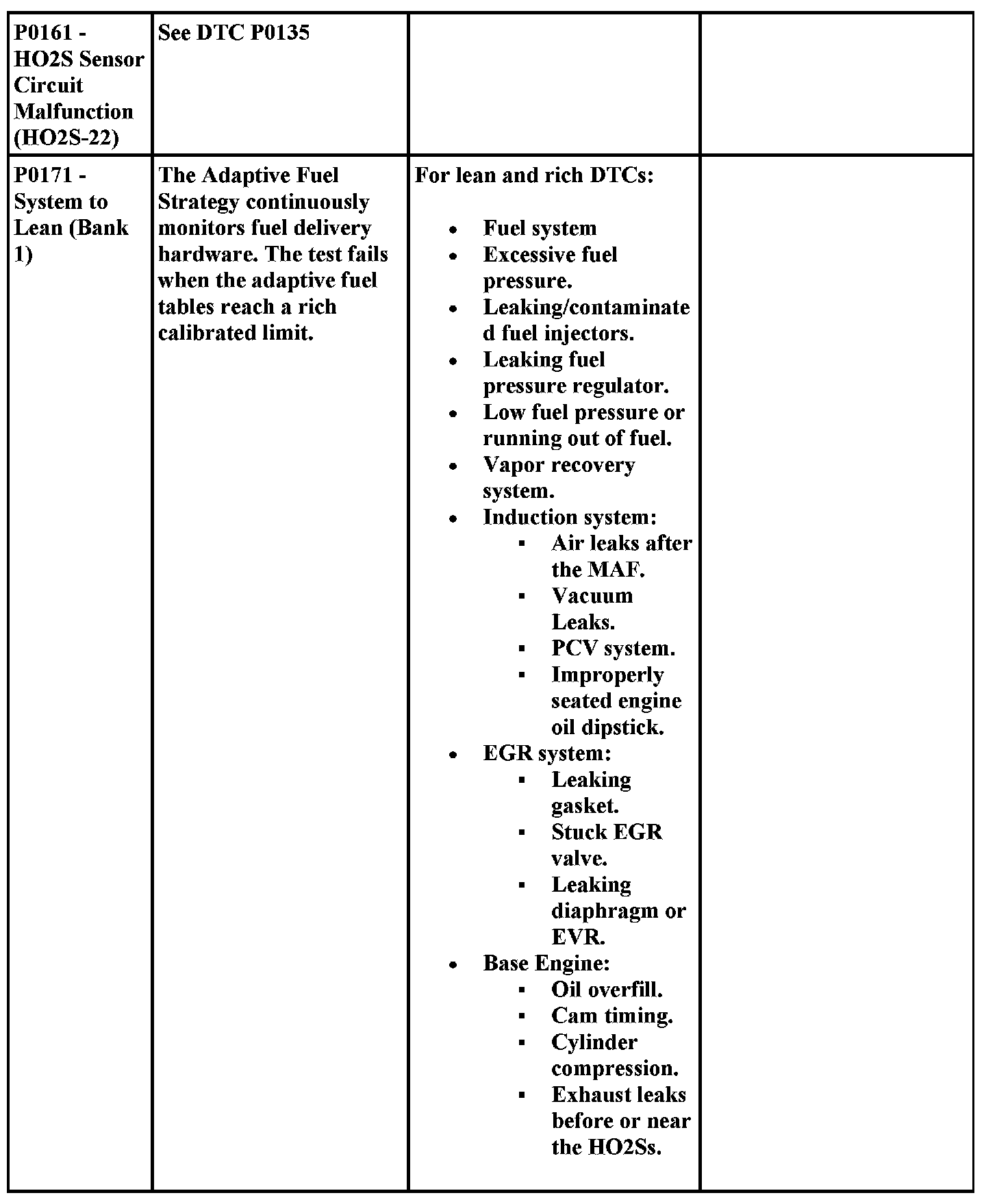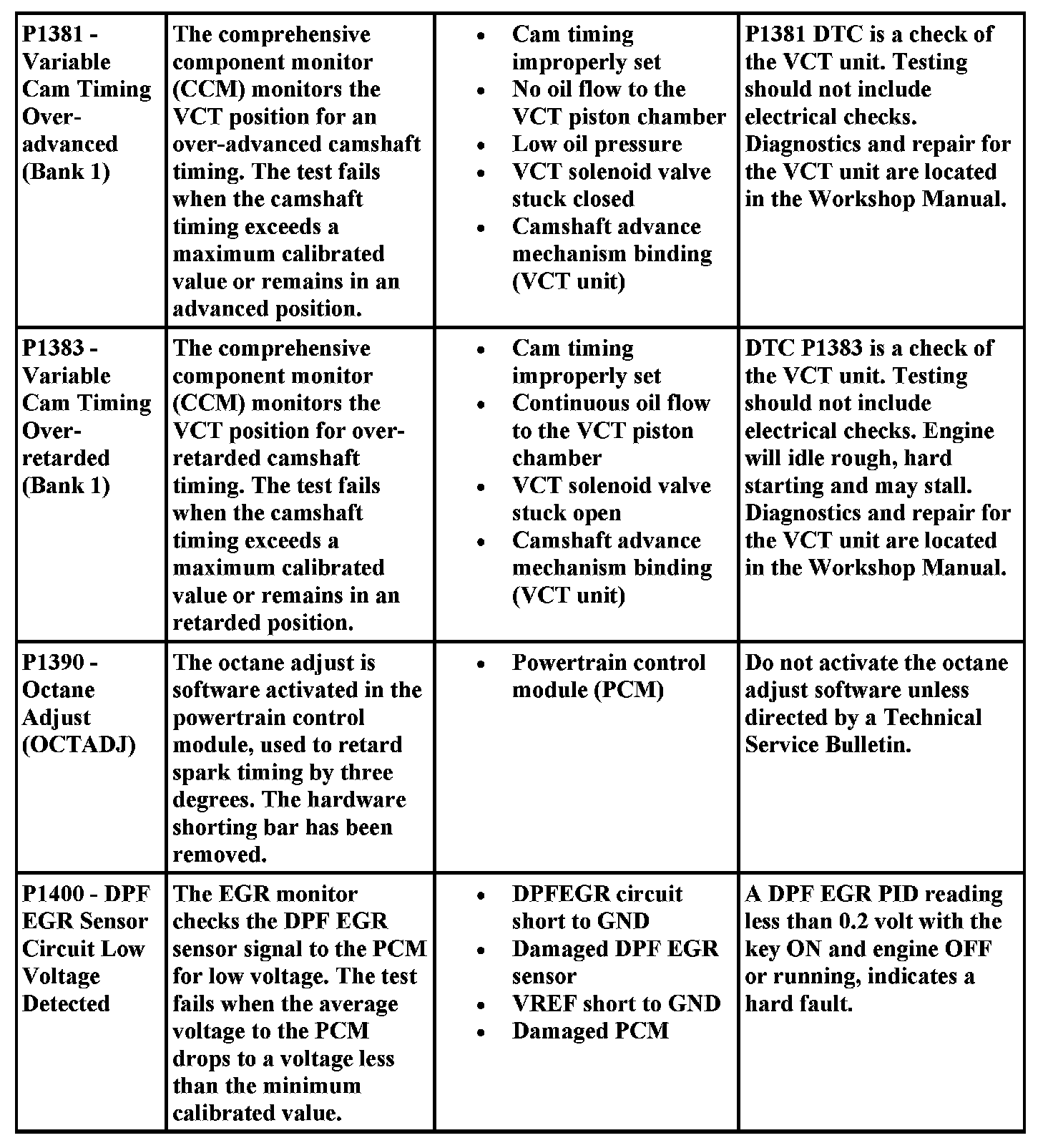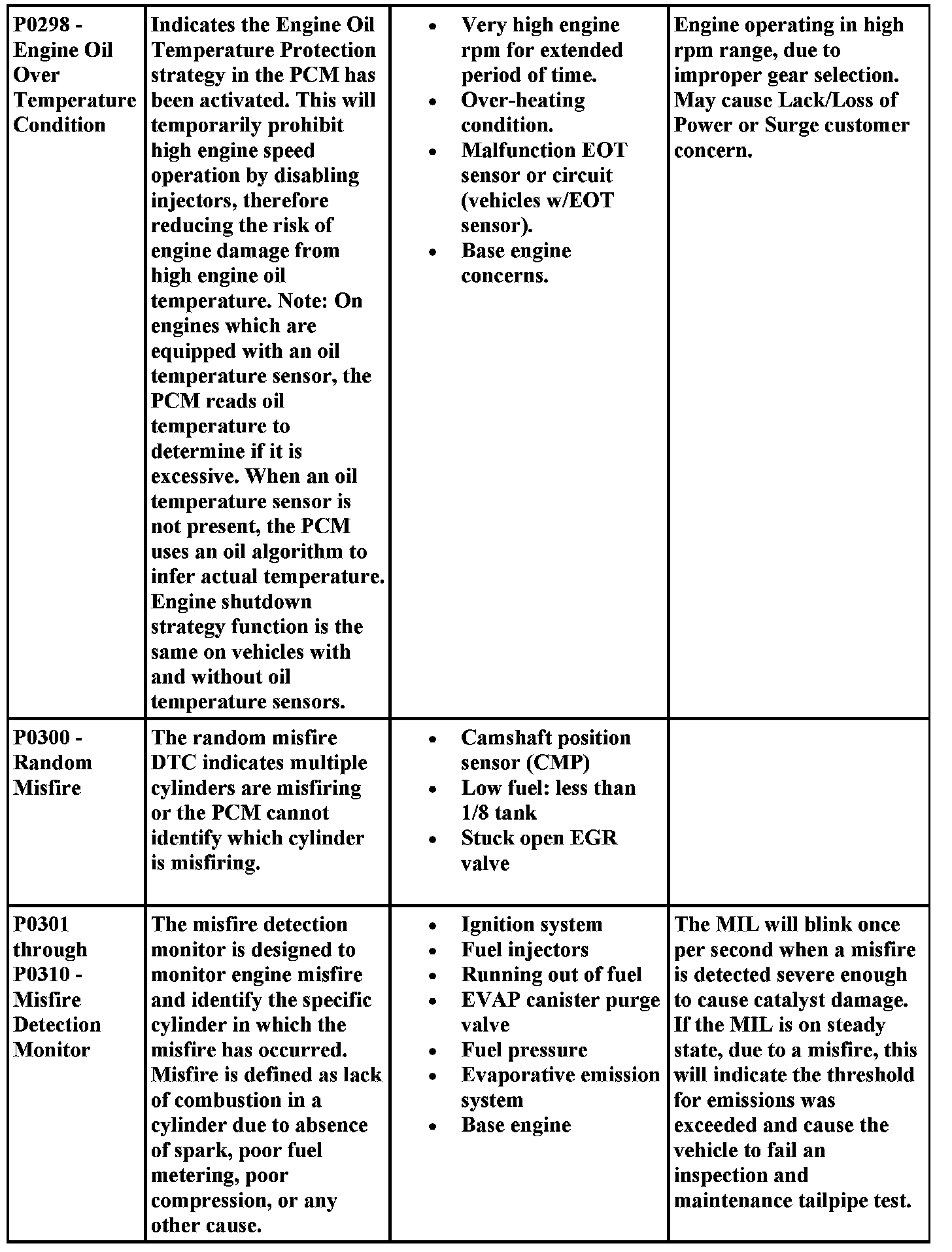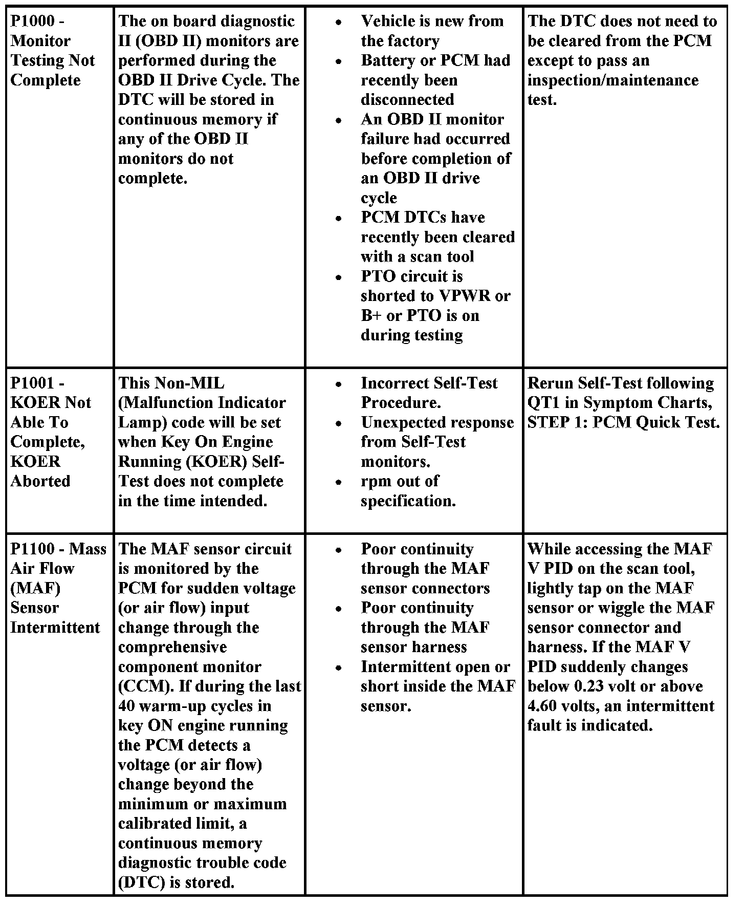 Aides for Diagnosing P Codes, Including Possible Causes