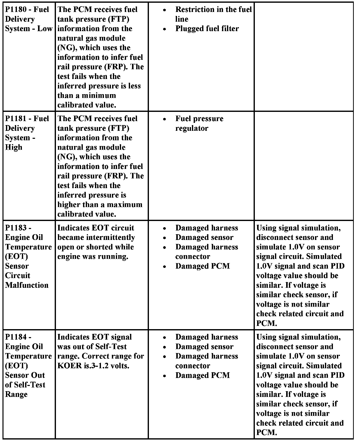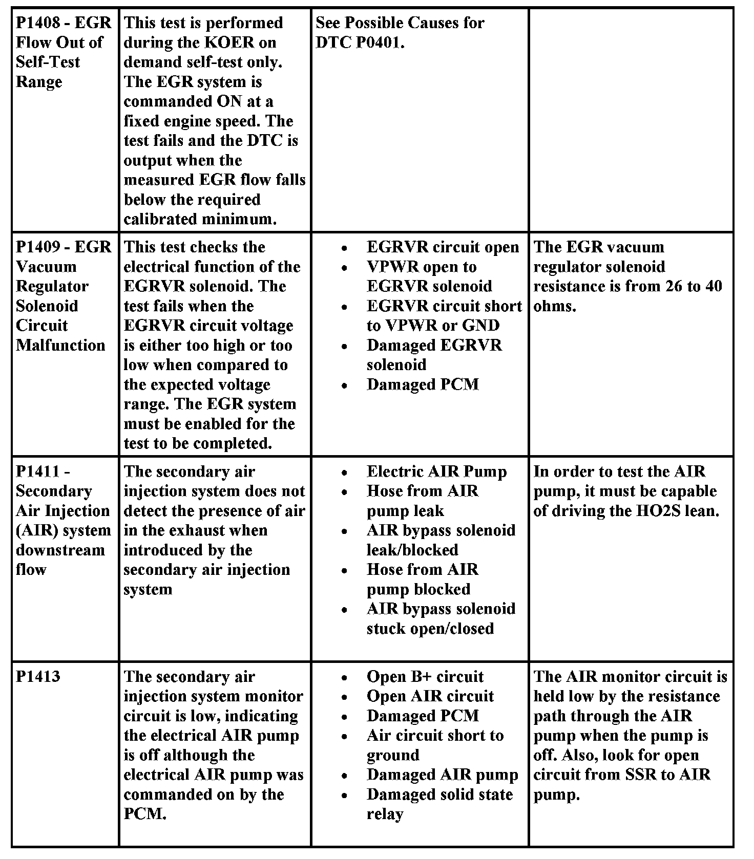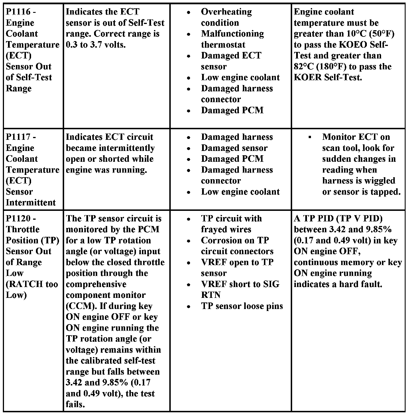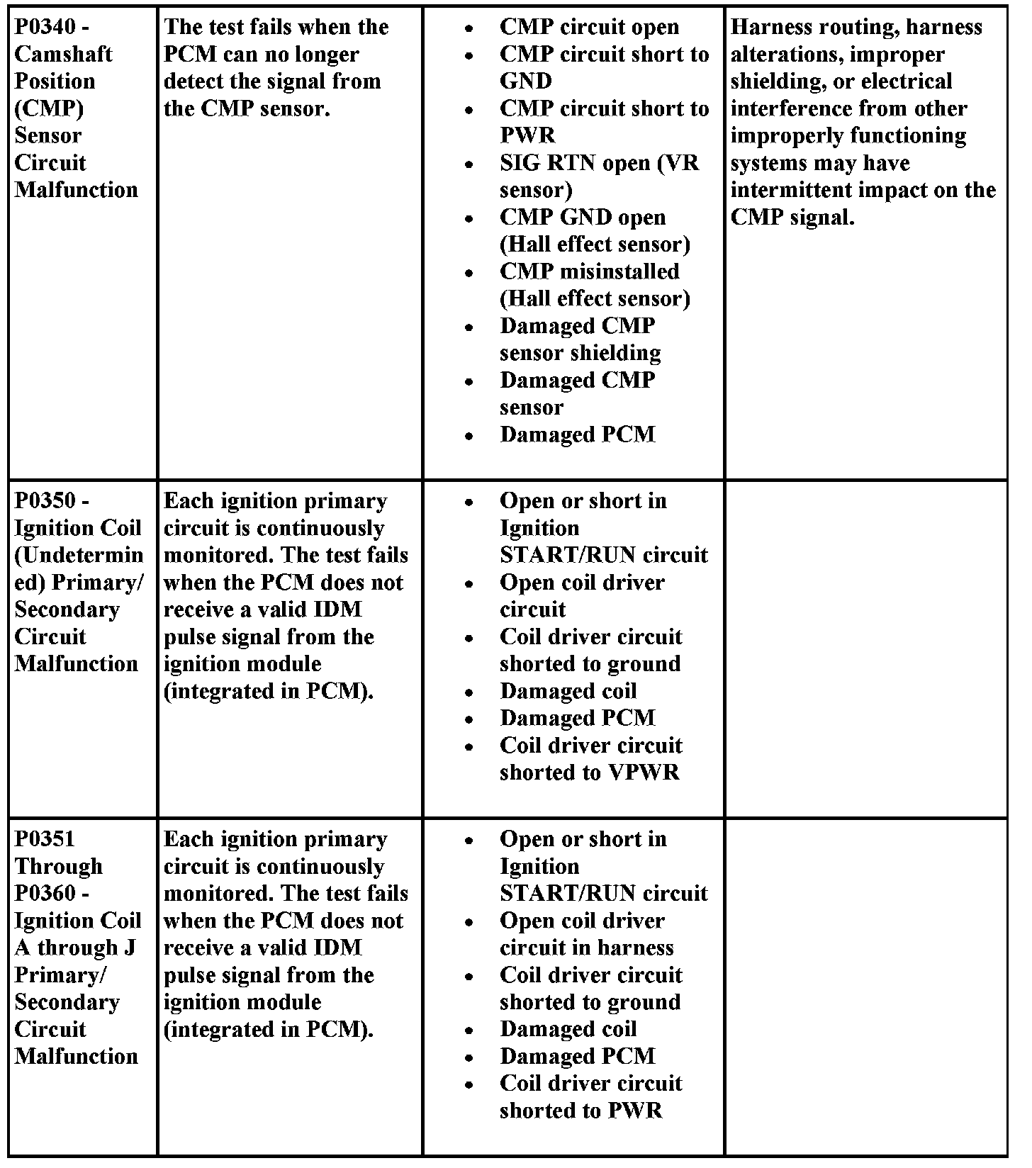 Aides for Diagnosing P Codes, Including Possible Causes