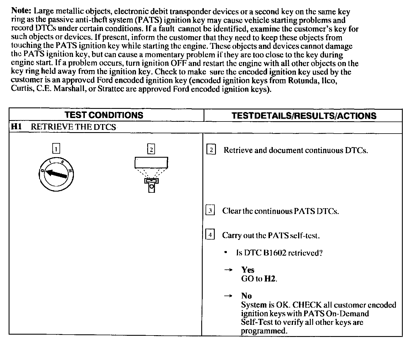 Test H: Invalid Key Code From Encoded Ignition Key Transponder