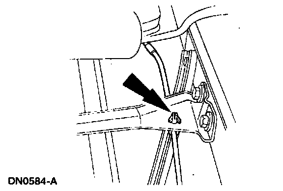 11. Remove the hood latch release cable and dash panel grommet through the front of the vehicle.